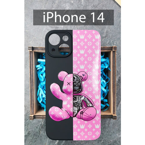 Силиконовый чехол на iPhone 14 с принтом розовый Медведь для Айфон 14