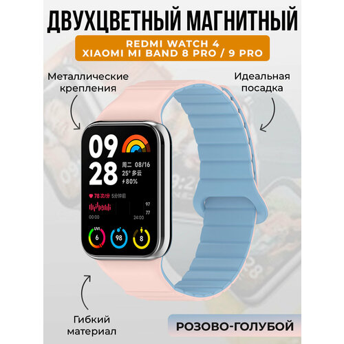 Двухцветный магнитный ремешок для Redmi Watch 4 / Xiaomi Mi Band 8 Pro / Xiaomi Mi Band 9 Pro, розово-голубой