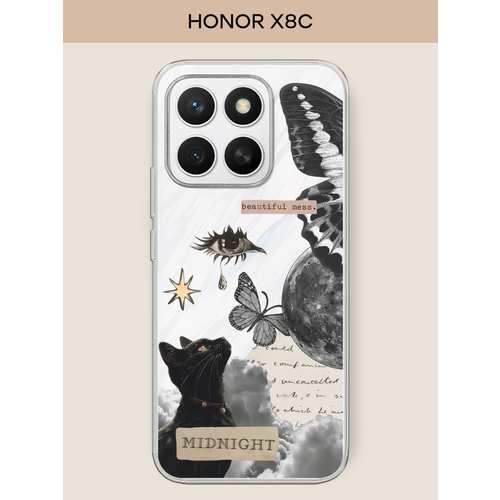 Чехол на Honor X8c / Хонор X8c с принтом Midnight collage, прозрачный