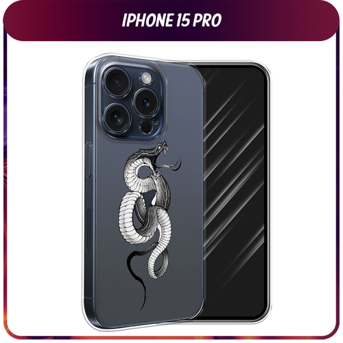 Чехол на Apple iPhone 15 Pro / Айфон 15 Про с принтом Монохромная змея рисунок, прозрачный