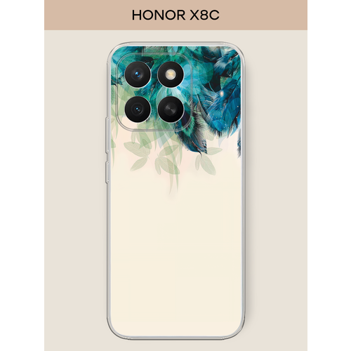 Чехол на Honor X8c / Хонор X8c с принтом Перья голубого цвета