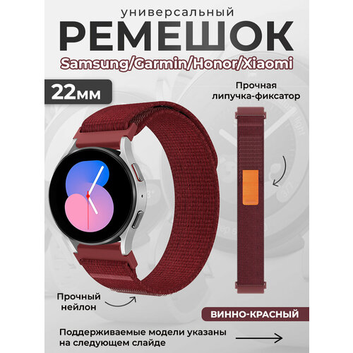 Универсальный нейлоновый ремешок Samsung, Garmin, Honor, Xiaomi, 22 мм, винно-красный