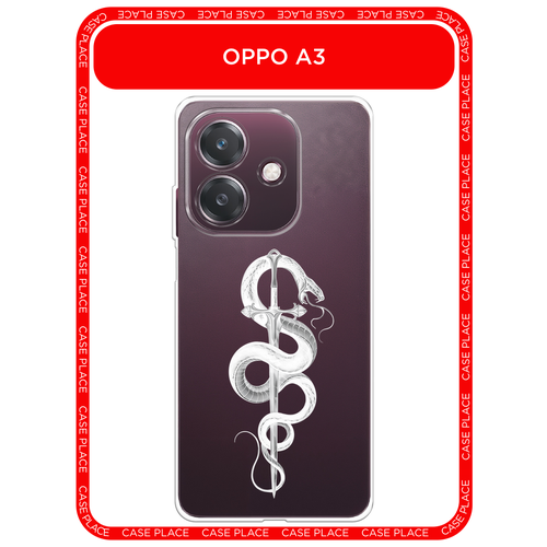Чехол на Oppo A3/A3x / Оппо А3/A3x с принтом Змея с мечом белая, прозрачный