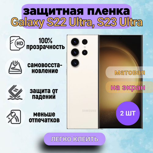 Комплект из 2 шт. Гидрогелевая полиуретановая пленка на SAMSUNG Galaxy S22 Ultra, S23 Ultra, матовая