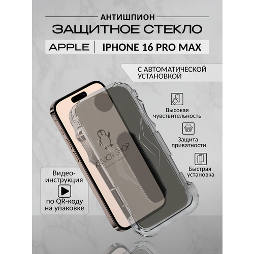 Защитное стекло с "автоматической" установкой для iPhone 16 Pro Max, антишпион