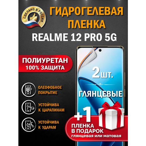Защитная гидрогелевая пленка на экран смартфона Realme 12 Pro 5G, глянцевая, 2 шт.