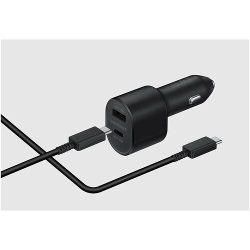 Автомобильное зарядное Samsung Super Fast, с кабелем, 45 Вт и 15 Вт, чёрное