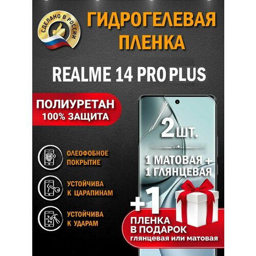 Защитная гидрогелевая пленка на экран Realme 14 Pro 5G, глянцевая + матовая, 2 шт.