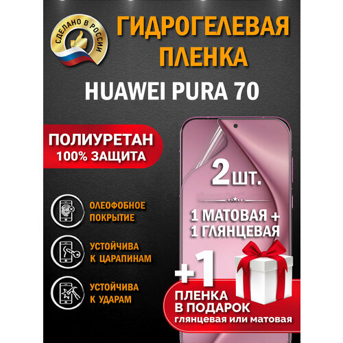 Защитная гидрогелевая пленка на экран HUAWEI Pura 70, матовая + глянцевая, 2 шт.