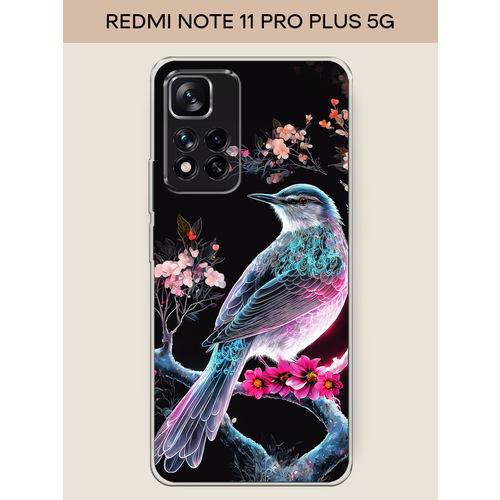 Силиконовый чехол "Птица на цветущем дереве" на Xiaomi Redmi Note 11 Pro Plus 5G / Сяоми Редми Нот 11 Про Плюс 5G