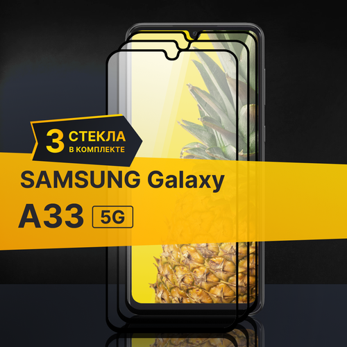 Комплект 3 шт. Противоударное защитное стекло для телефона Samsung Galaxy A33 5G / Полноклеевое 3D стекло с олеофобным покрытием на смартфон Самсунг Галакси А33 5Г / С черной рамкой