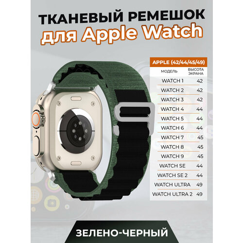 Тканевый ремешок для Apple Watch 1-9 / SE / ULTRA (42/44/45/49 мм), зелено-черный