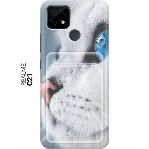 Чехол с карманом для карт на realme C21 / Рилми С21 с принтом "Кошачий взгляд"