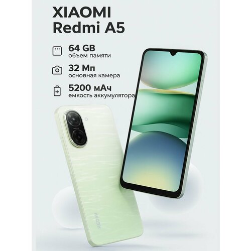 Смартфон XIAOMI Redmi A5 3/64 ГБ, Green (зеленый), процессор: UNISOC T7250 Dual: nanoSIM (RU)