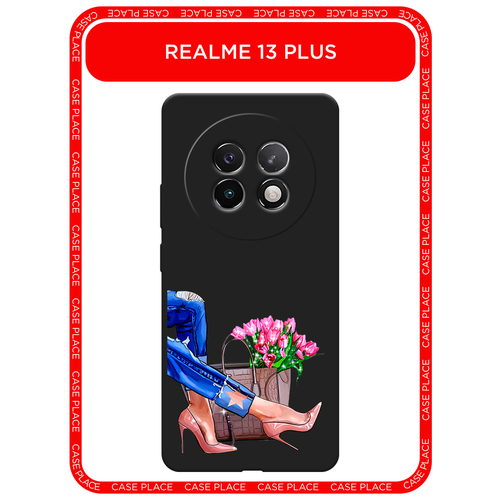 Черный матовый чехол на Realme 13+ / Реалми 13+ с принтом Каблучки