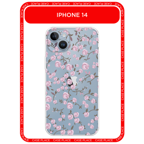 Чехол на Apple iPhone 14 / Айфон 14 с принтом Нежно-розовые розы 2, прозрачный