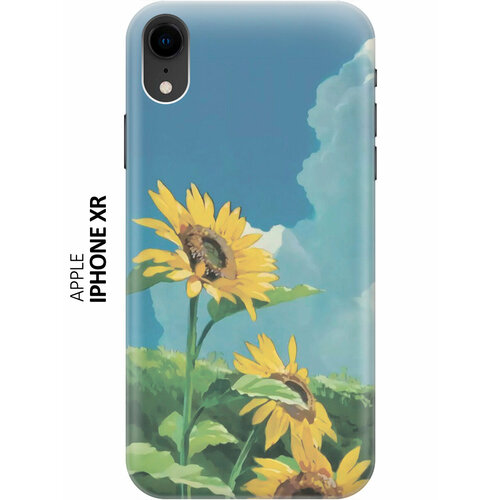 Силиконовый чехол на Apple iPhone XR / Эпл Айфон Икс Эр с рисунком "Три подсолнуха в поле"