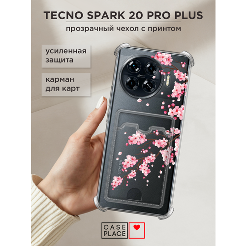 Чехол на Tecno Spark 20 Pro Plus (Текно Спарк 20 Про Плюс) с картой и принтом "Розовая ветка сакуры"