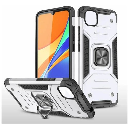 Противоударный чехол для Samsung Galaxy A22 5G серебро с пластиной для магнитного автодержателя и кольцом подставкой