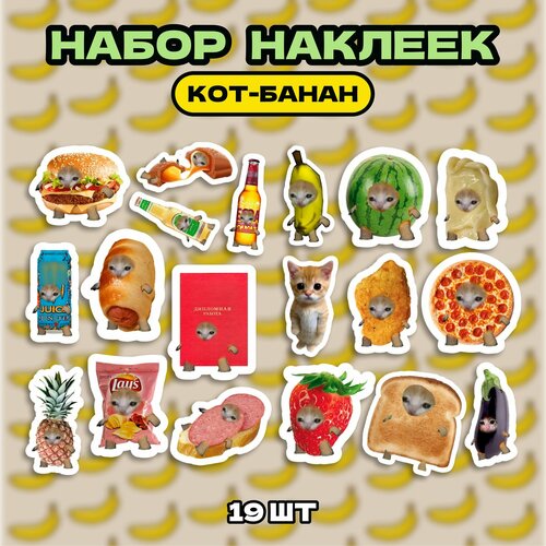 Набор наклеек 19 шт с мемом Кот-банан // стикеры наклейки котики для ежедневника