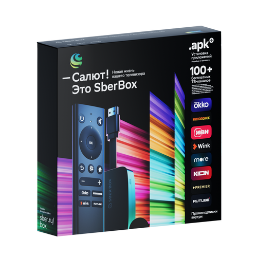 Смотрите более 90 000 фильмов, сериалов, мультфильмов и образовательных лекций на Sber Box вместе с онлайн-кинотеатром Okko. Пробная подписка всего за 1 ₽ в комплекте. Также SBER BOX поддерживает ivi, Wink, more.tv и Kion. Список доступных видеосервисов постоянно растёт. Не пропускайте любимые телепередачи — на Сбербокс доступны более 190 ТВ-каналов с пробной подпиской за 1 ₽. Когда триал закончится, подписку можно продлить, расширить или смотреть стандартные 22 канала бесплатно.
