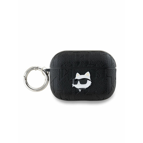 Lagerfeld для Airpods Pro чехол PU Saffiano Monogram with ring NFT Metal Head Karl&Choupette Black