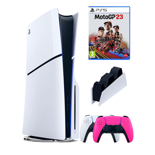 PS5 (ПС5) Игровая приставка Sony PlayStation 5 Slim disk+2-й геймпад(розовый)+зарядное+ MotoGP 23, 1000 ГБ