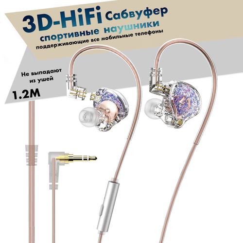 Наушники с микрофоном / разъём jack 3.5 мм / LA Lafitear / гарнитура / проводные наушники /перламутровый цвет
