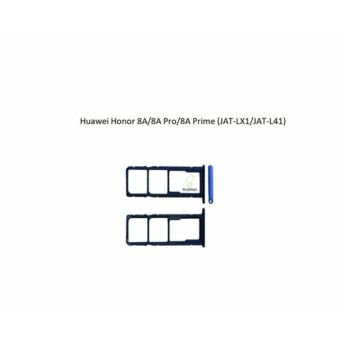 Держатель SIM для Huawei Honor 8A/8A Pro/8A Prime (JAT-LX1/JAT-L41), Синий (Сим Лоток)