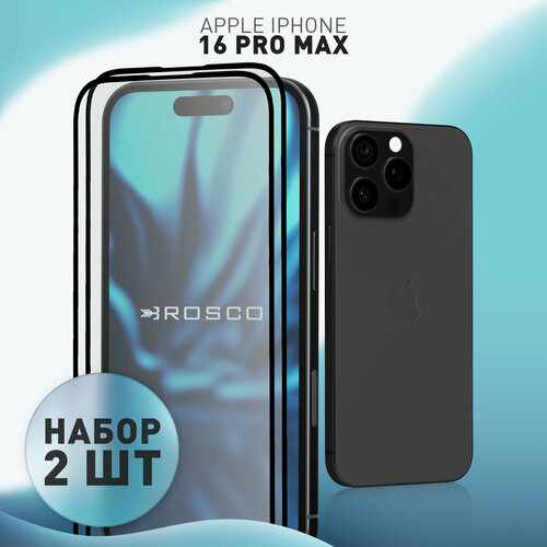 Набор матовых защитных стёкол на Apple iPhone 16 Pro Max (Айфон 16 Про Макс), бренд Rosco, с чёрными рамками, 2 шт