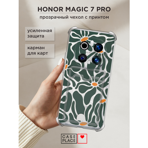 Чехол на Honor Magic 7 Pro (Хонор Мэджик 7 Про) с картой и принтом Волнистые цветы