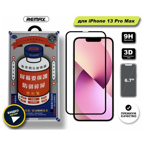 Защитное стекло Remax Iphone 13 Pro Max/ Iphone 14 Plus, черное, прозрачное, 3D, 9H