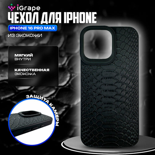 Чехол из экокожи под питона для iPhone 16 Pro Max, iGrape (Черный) / чехол на айфон 16 про макс