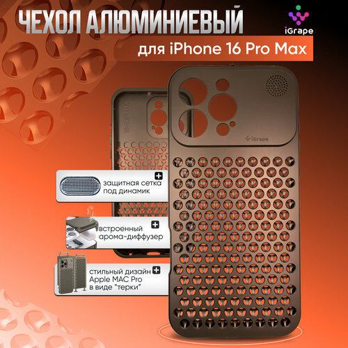 Металлический чехол (закрытый) из алюминия для iPhone 16 Pro Max, iGrape (Кофейный) / чехол на айфон 16 про макс