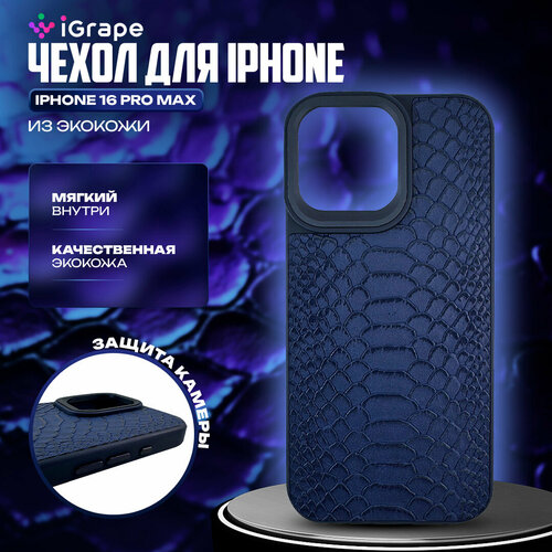 Чехол из экокожи под питона для iPhone 16 Pro Max, iGrape (Синий) / чехол на айфон 16 про макс