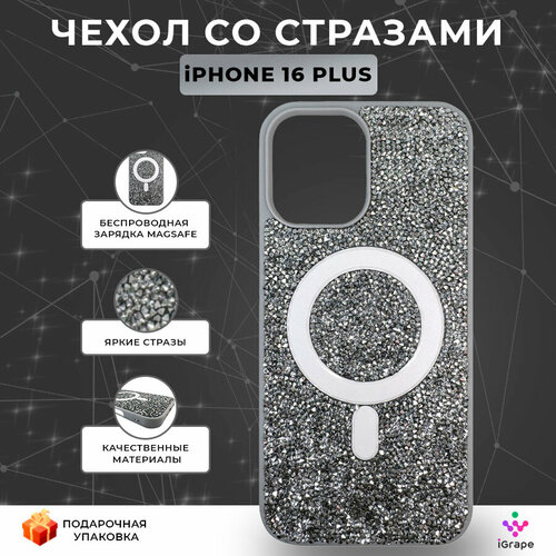 Чехол со стразами с MagSafe для iPhone 16 Plus, iGrape (Серебристый) / чехол на айфон 16 плюс