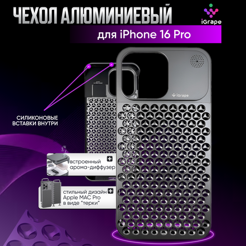 Металлический чехол из алюминия для iPhone 16 Pro, iGrape (Темно-серый) / чехол на айфон 16 про