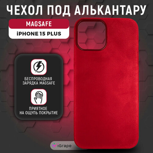 Чехол под алькантару с MagSafe для iPhone 15 Plus, iGrape (Красный) / чехол на айфон 15 плюс