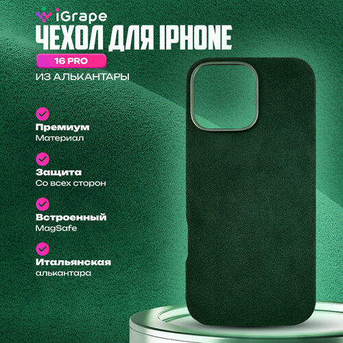 Чехол из алькантары с MagSafe для iPhone 16 Pro, iGrape (Зеленый) / чехол на айфон 16 про