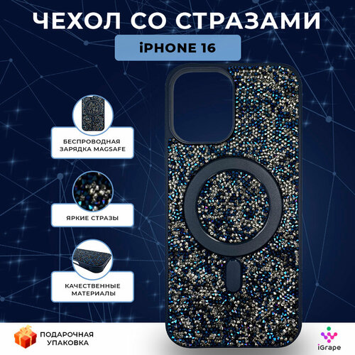 Чехол со стразами с MagSafe для iPhone 16, iGrape (Космический) / чехол на айфон 16
