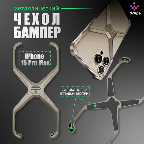 Металлический чехол-бампер из алюминия для iPhone 15 Pro Max, iGrape (Титановый) / чехол на айфон 15 про макс