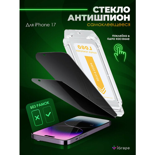 Защитное стекло самоклеящееся с боксом iPhone 17, iGrape (Антишпион) / стекло на айфон 17