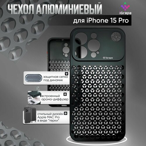 Металлический чехол (закрытый) из алюминия для iPhone 15 Pro, iGrape (Черный) / чехол на айфон 15 про