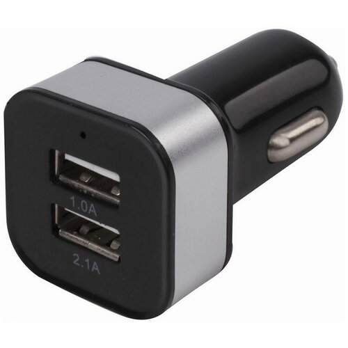 Зарядное устройство автомобильное SONNEN, 2 порта USB, выходной ток 2,1 А, черное-белое, 454796