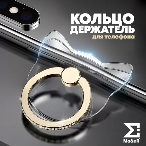 Попсокет для телефона кольцо держатель прозрачный со стразами золотой котик