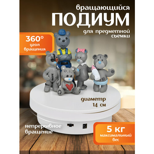 Вращающаяся подставка (подиум) для предметной съемки 14 см, 360°, макс. нагрузка 5 кг, белая