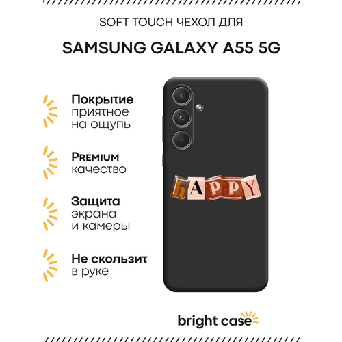 Чехол на Samsung Galaxy A55 5G / Самсунг А55 5G с принтом "Надпись: Happy"