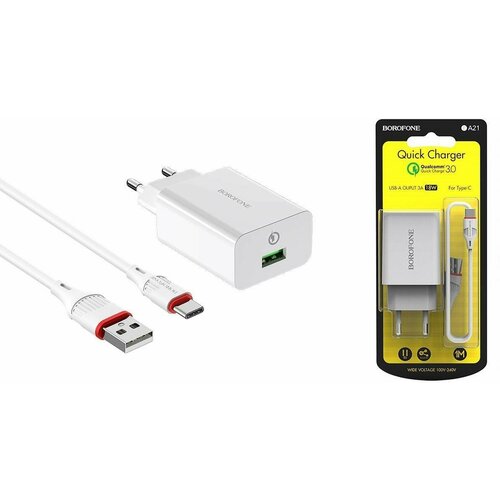 Сетевое зарядное устройство Borofone BA47A Mighty speed + кабель USB Type-C, 18 Вт
