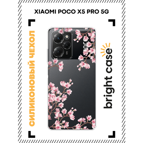 Чехол на Xiaomi Poco X5 Pro 5G / Сяоми Поко X5 Про 5G с принтом Весенняя сакура, прозрачный