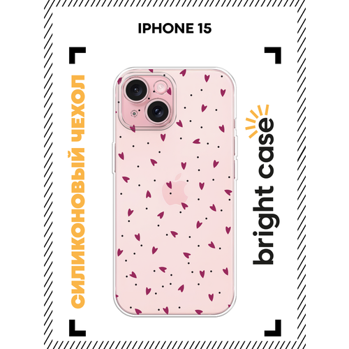 Чехол на Apple iPhone 15 / Айфон 15 с принтом Лиловые сердечки, прозрачный